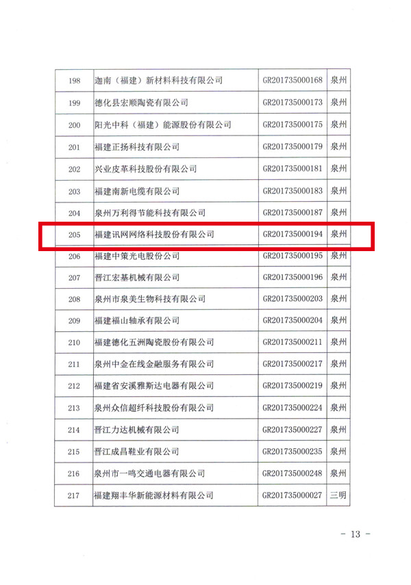 日前,福建訊網(wǎng)網(wǎng)絡(luò)科技股份有限公司(簡(jiǎn)稱:訊網(wǎng)網(wǎng)絡(luò),股票代碼:839825)通過(guò)國(guó)家《高新技術(shù)企業(yè)認(rèn)定管理辦法》和《高新技術(shù)企業(yè)認(rèn)定管理工作指引》的相關(guān)規(guī)定,參加復(fù)審,再次獲得了國(guó)家級(jí)高新技術(shù)企業(yè)認(rèn)證,為公司的研發(fā)創(chuàng)新實(shí)力的提升,再添榮耀。